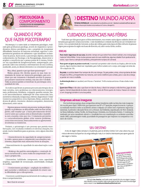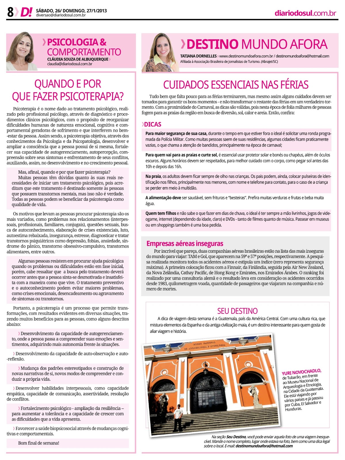 27/01/2013 Destino Mundo Afora | Coluna 2 Postado por: Tatiana Dornelles Tweetar Coluna Destino Mundo Afora, no jornal Diário do Sul. Data: 26 e 27 de janeiro de 2013.
