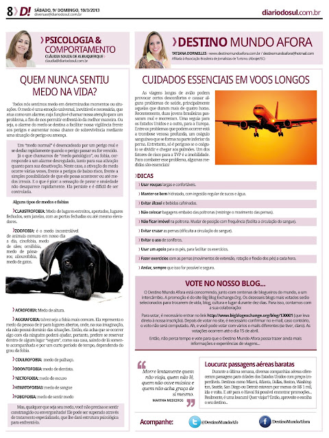 09/03/2013 Destino Mundo Afora | Coluna 8 Postado por: Tatiana Dornelles Tweetar Coluna Destino Mundo Afora, no jornal Diário do Sul. Data: 9 e 10 de março de 2013.