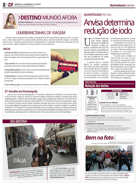 04/05/2013 Destino Mundo Afora | Coluna 16 Postado por: Tatiana Dornelles Tweetar Coluna Destino Mundo Afora, no jornal Diário do Sul. Data: 4 e 5 de maio de 2013.