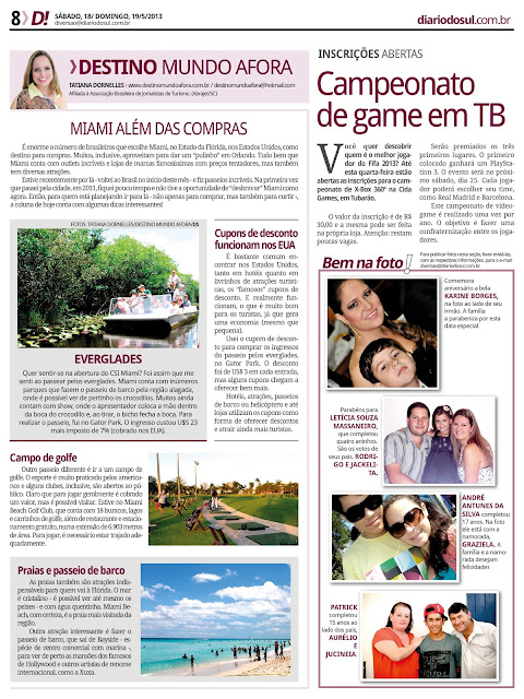 21/05/2013 Destino Mundo Afora | Coluna 18 Postado por: Tatiana Dornelles Tweetar Coluna Destino Mundo Afora, no jornal Diário do Sul. Data: 18 e 19 de maio de 2013.