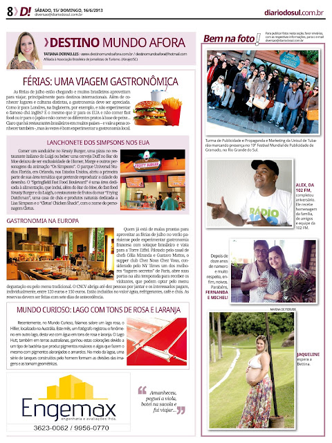15/06/2013 Destino Mundo Afora | Coluna 22 Postado por: Tatiana Dornelles Tweetar Coluna Destino Mundo Afora, no jornal Diário do Sul. Data: 15 e 16 de junho de 2013.