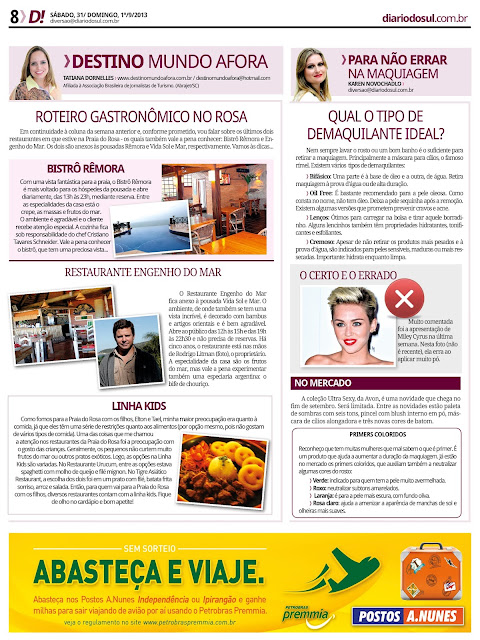 01/09/2013 Destino Mundo Afora | Coluna 33 Postado por: Tatiana Dornelles Tweetar Coluna Destino Mundo Afora, no jornal Diário do Sul. Data: 31 de agosto e 1° de setembro de 2013.