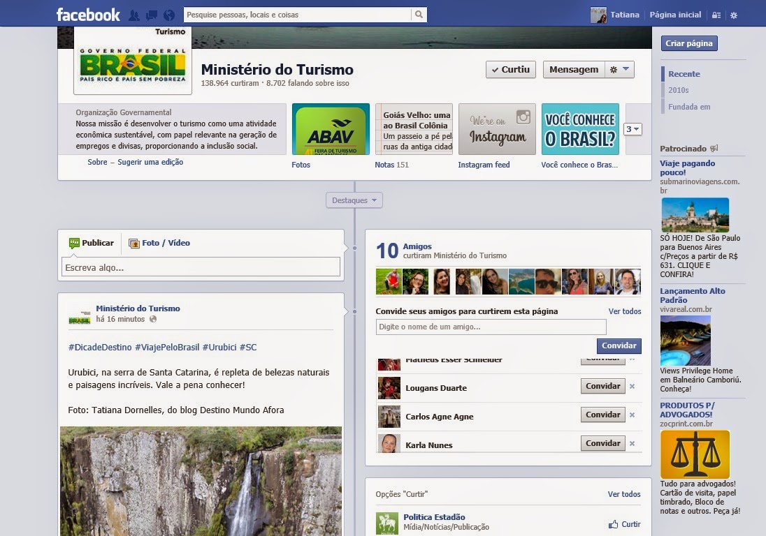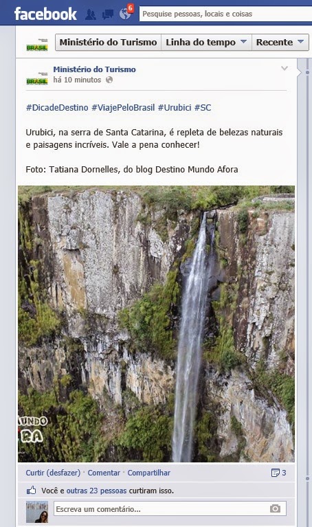 03/09/2013 Dica de destino na fanpage do Ministério do Turismo Postado por: Tatiana Dornelles Tweetar Dica do Destino Mundo Afora na página do Ministério do Turismo no Facebook. Data: 3 de setembro de 2013.