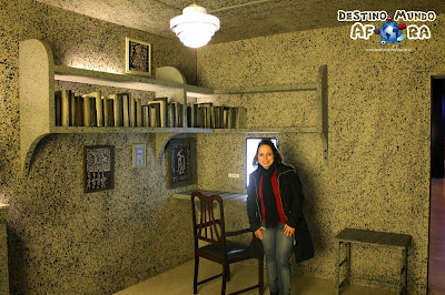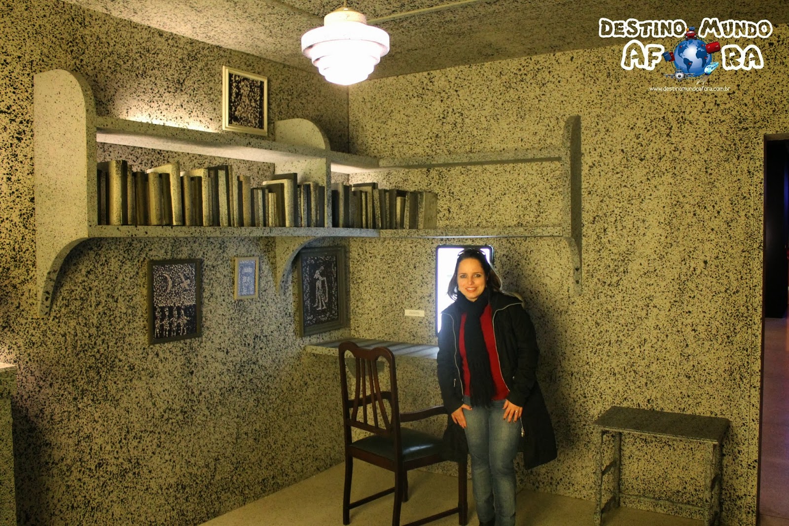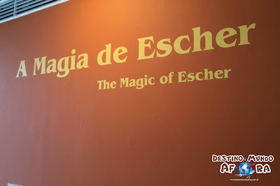 Neste dia, estava em exposição a mostra “A Magia de Escher”, do artista gráfico holandês Maurits Cornelis Escher (1898-1972), que reuniu cerca de 85 obras, entre gravuras originais, desenhos e fac-símiles. E uma das características do artista está justamente em provocar alguns efeitos de ilusão de ótica muito legais… Entre os trabalhos que chamaram a atenção estava o espaço em que nos “transforma em gigantes ou pequenos”. É um espaço interativo, onde é possível fotografar. E eu e o Jr. Caimi, do blog Tip Trip Viagens, fizemos até uma brincadeira…