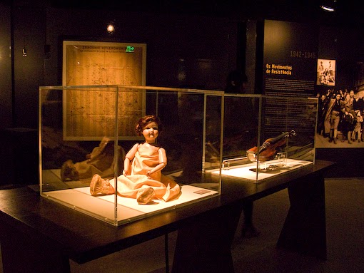 Depois, fomos para a parte interativa, onde é possível ouvir as histórias reais de pessoas que sofreram, morreram ou lutaram pela sobrevivência durante a opressão. Além disso, também há muitas histórias de pessoas que se arriscaram para salvar judeus. Neste momento, Carlos nos deixou absorver as histórias sozinhos, já que junto a cada objeto tem um botão em que, ao apertar, começa a contar a quem pertencia e como tal objeto chegou ao museu.