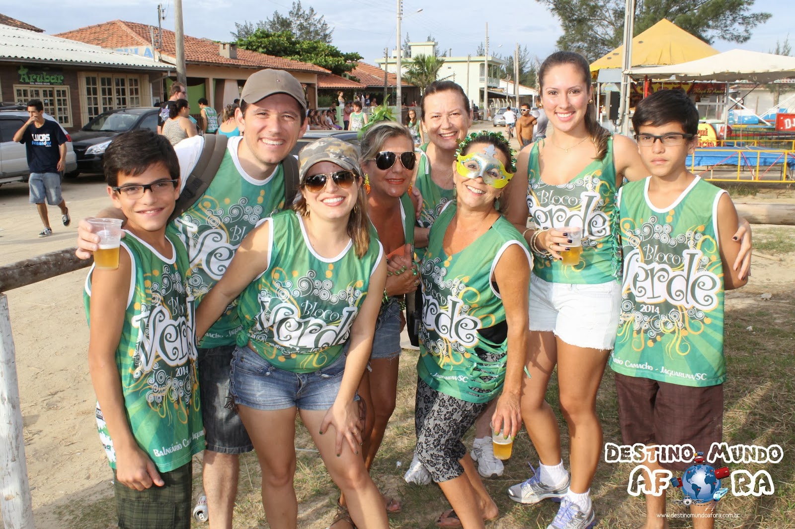 Fomos eu, Max, Elton, Tael e meus pais, Tânia e Rogério, além da Jô e Kamila. Começamos a participar do Bloco Verde na primeira edição, em 2009, quando o mesmo virou responsabilidade da Associação Costa Azul de Veranistas (Acav), e a convite do nosso amigo e um dos organizadores, Dilnei Antunes, acabamos comprando os abadás. Depois do primeiro evento, estivemos presentes em todas as edições, menos em 2013, quando não houve bloco (pena!).