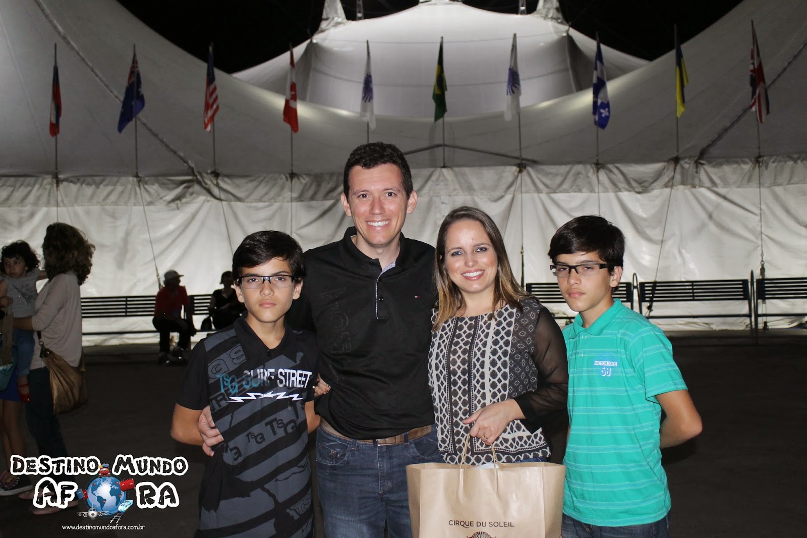 As lembrancinhas têm preços variados. Um DVD custa R$ 55,00; a caneca, R$ 40,00; o chaveiro, R$ 30,00. Há ainda camisetas, bonés, máscaras, entre outros… Um pote personalizado de pipoca, grande, custa R$ 28,00. Eu, por exemplo, sempre compro o DVD do show que assisto e uma caneca, como lembrança. E é tudo de excelente qualidade. Desta vez, Elton e Tael quiseram comprar o pote de pipoca, que é bem legal também. Também havia um local para fotografar (montagem com personagem do circo), onde era possível postar diretamente no Facebook. E nós, certamente, fizemos isso…