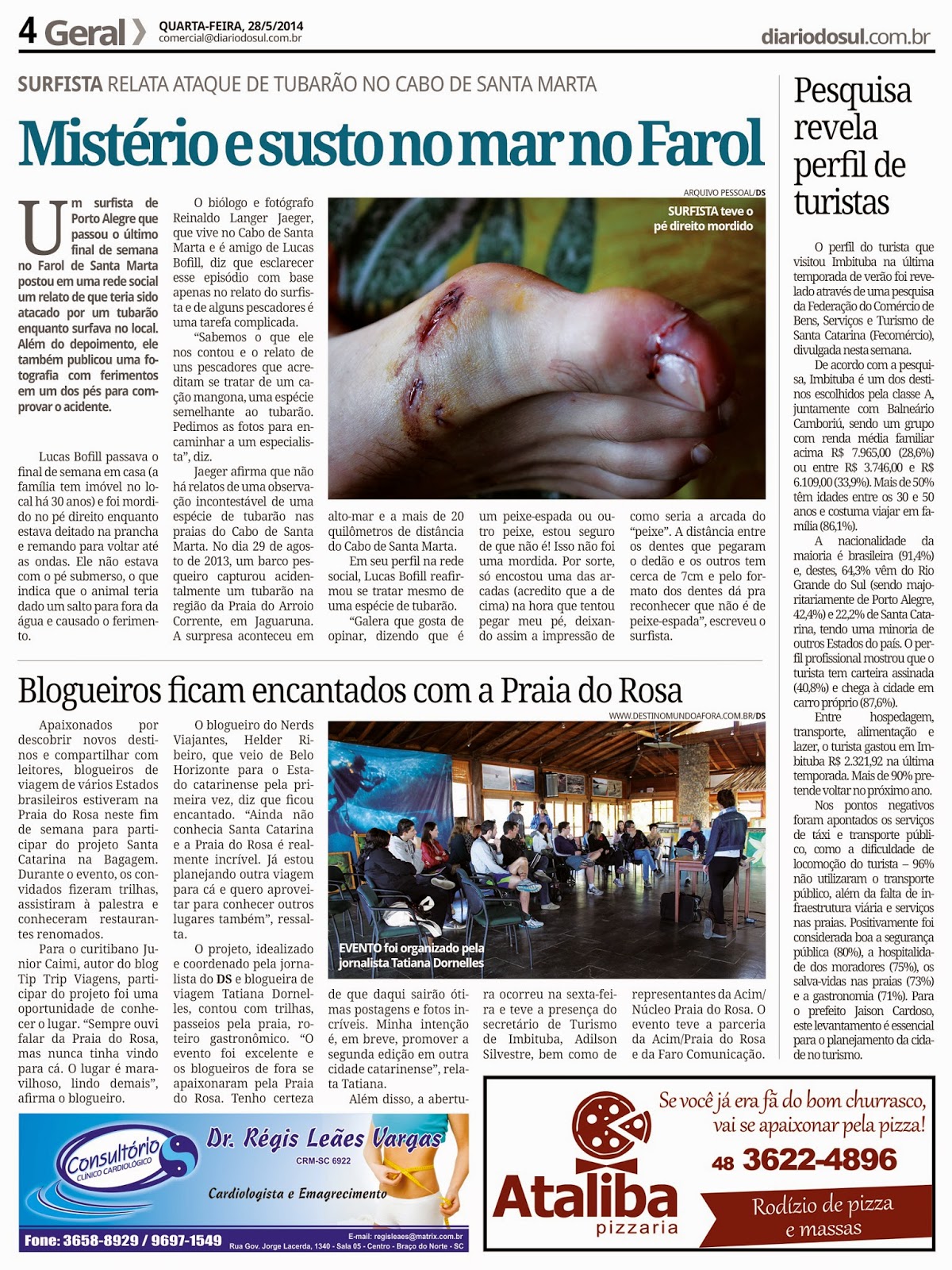 Matéria do projeto Santa Catarina na Bagagem no jornal Diário do Sul