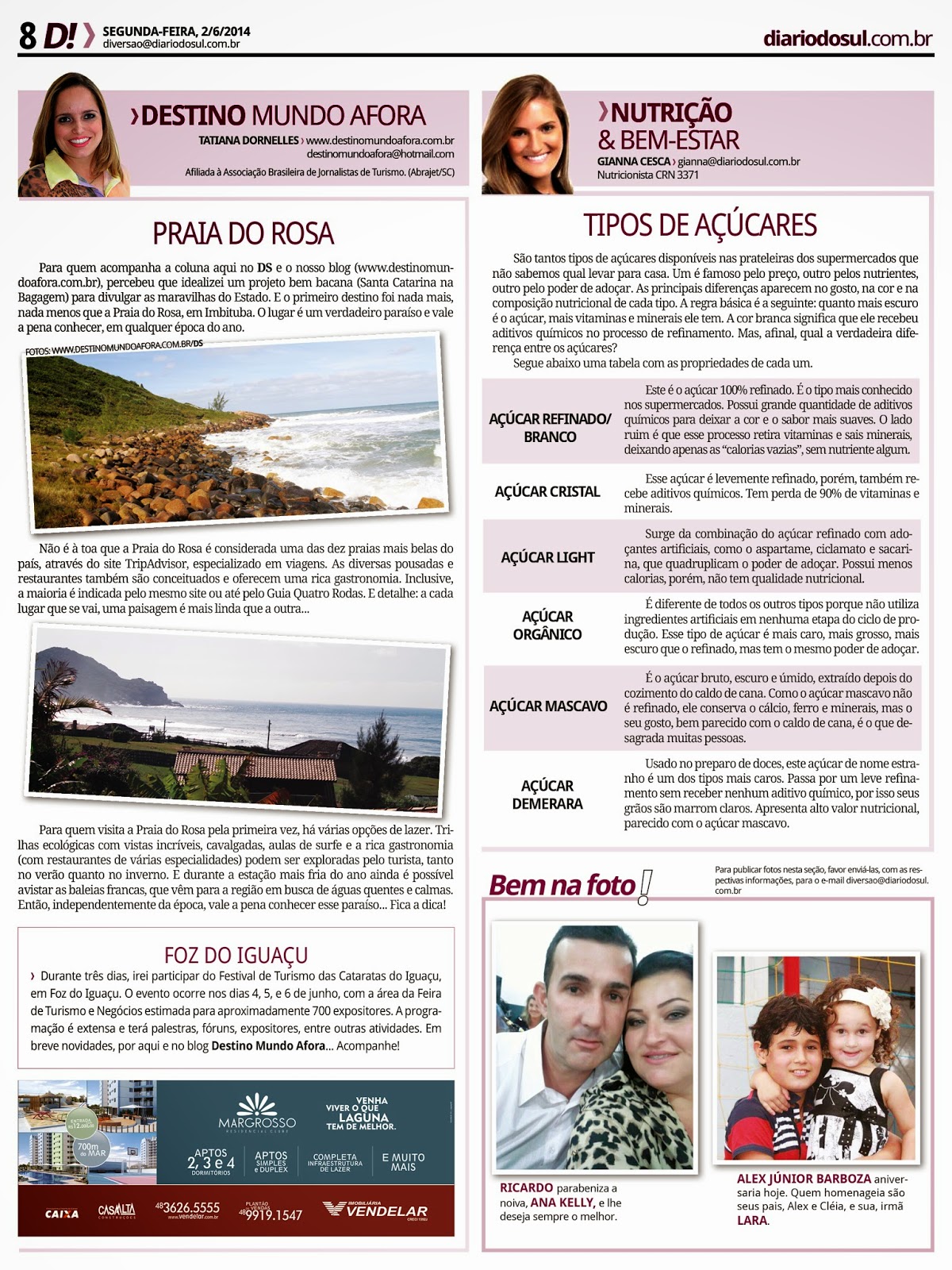 02/06/2014 Destino Mundo Afora | Coluna 70 Postado por: Tatiana Dornelles Tweetar Coluna Destino Mundo Afora no jornal Diário do Sul. Data: 2 de junho de 2014.