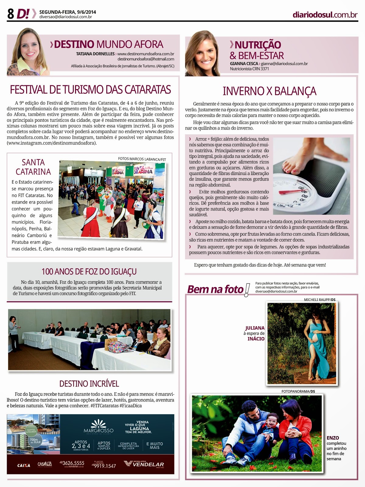 10/06/2014 Destino Mundo Afora | Coluna 71 Postado por: Tatiana Dornelles Tweetar Coluna Destino Mundo Afora no jornal Diário do Sul. Data: 9 de junho de 2014.