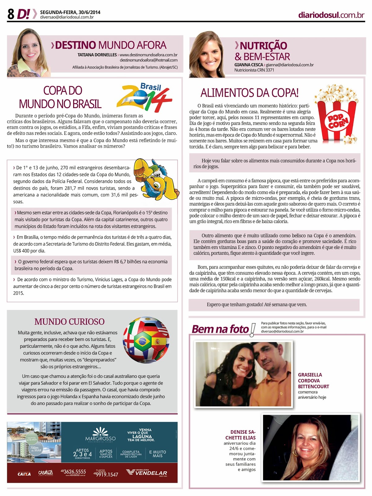 07/07/2014 Destino Mundo Afora | Coluna 75 Coluna Destino Mundo Afora no jornal Diário do Sul. Data: 7 de julho de 2014. Quer aparecer na coluna? Então, mande a foto da sua viagem para destinomundoafora@hotmail.com Gostou?Então, deixe seu comentário, curta nossa fanpage no Facebook e siga nosso perfil no Twitter e no Instagram.