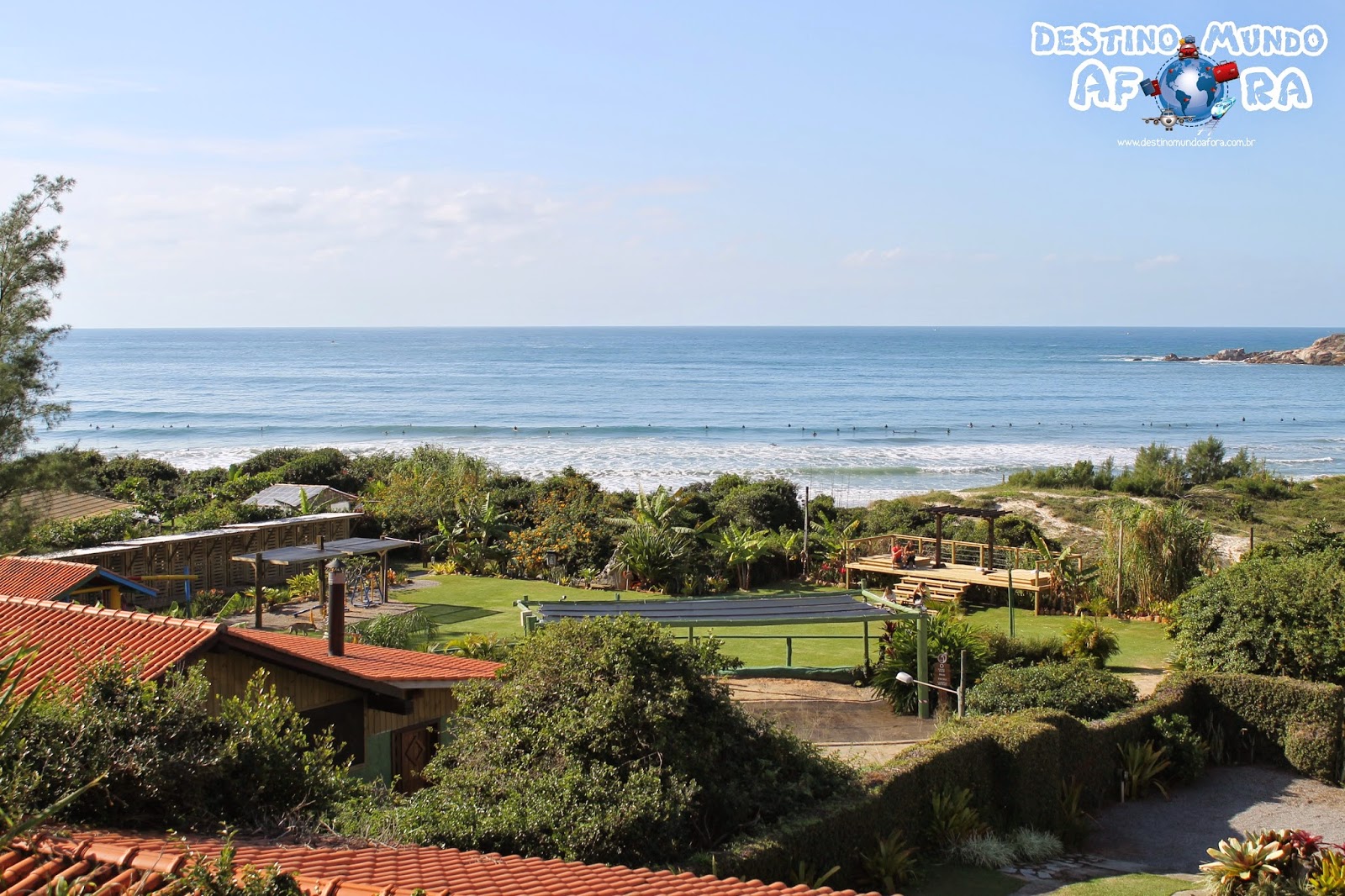 Para entrar e sair da pousada de carro, também é preciso usar a senha (aquela que falei acima). Assim, é mais prático e ninguém fica controlando a hora de entrar e sair (hehe). Mas, como já falei também, além de toda essa estrutura legal e aconchegante, a vista para a Praia do Rosa é linda. Inclusive, na temporada de baleias francas muitas vezes dá para avistá-las da pousada.
