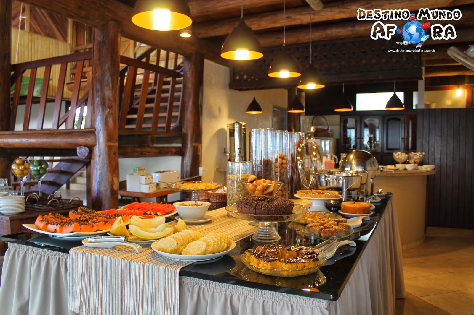 O café da manhã é caprichado. Tem de tudo: café, sucos, chás, capuccino, iogurte, água, pães variados, bolos de diversos sabores, frutas, frios, cereais, ovos mexidos, etc. Difícil é ficar sem comer muito na principal refeição do dia… Além disso, o local é super-charmoso.