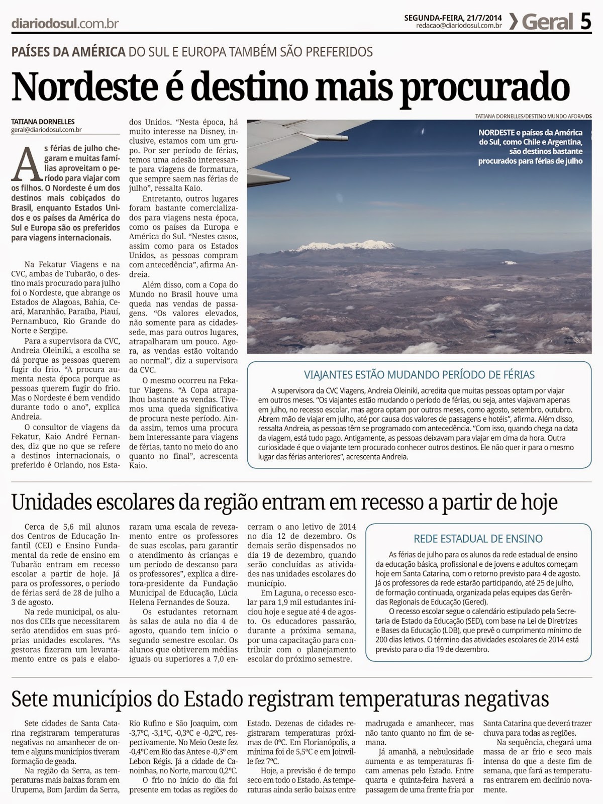 Postado por: Tatiana DornellesA foto do blog Destino Mundo Afora aparece no portal do Diário do Sul, no texto “Nordeste é destino mais procurado – Países da América do Sul e Europa também são preferidos”.