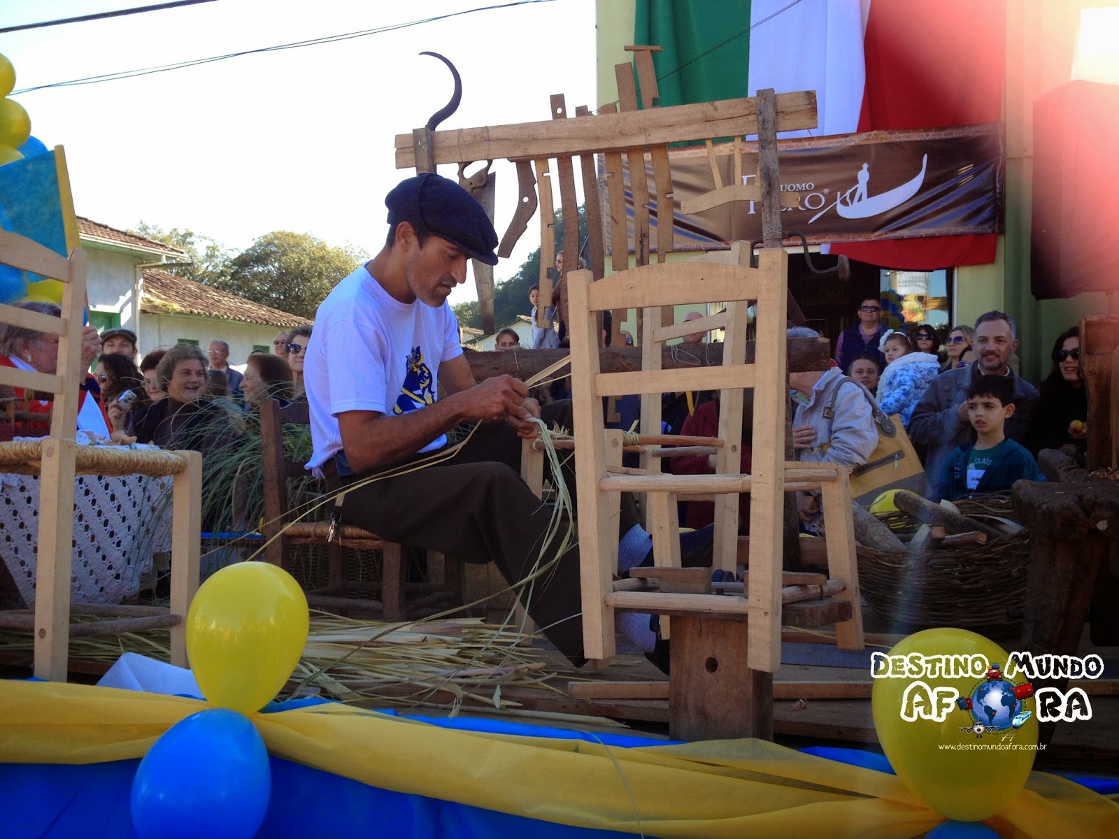 Passamos o domingo na cidade, último dia de evento, mas foi muito divertido. Chegamos cedinho para poder assistir ao desfile, marcado para 9h30. O que achei interessante é que as famílias que ajudaram a colonizar Nova Veneza saem na avenida, com faixas e fotografias antigas. Inclusive, algumas pessoas usam roupas tipicamente italianas. Outra coisa que achei superlegal é que as famílias distribuem para os espectadores laranjas, queijos, balas, entre outros produtos, muitos feitos por eles.