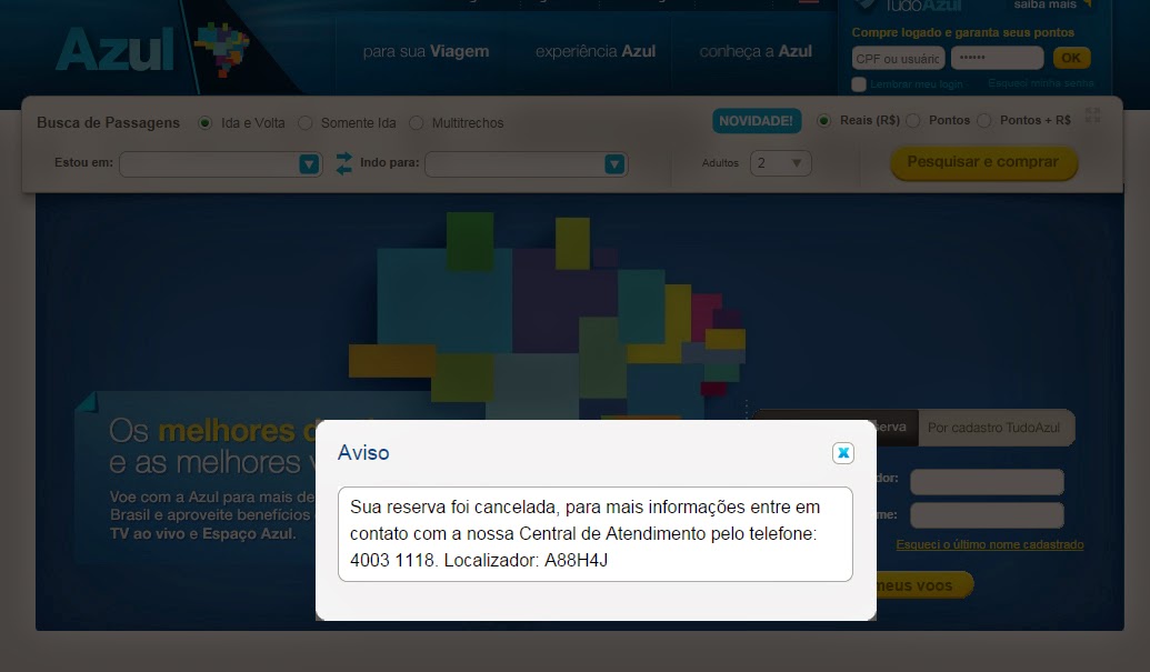 Postado por: Tatiana DornellesRecentemente, comprei duas passagens aéreas pela Azul Linhas Aéreas de Florianópolis a Goiânia. Estava com tudo agendado, porém, infelizmente, devido a compromissos profissionais, tive que cancelar. Fiquei triste pelo fato de não poder ir, mas às vezes temos que fazer certas escolhas…