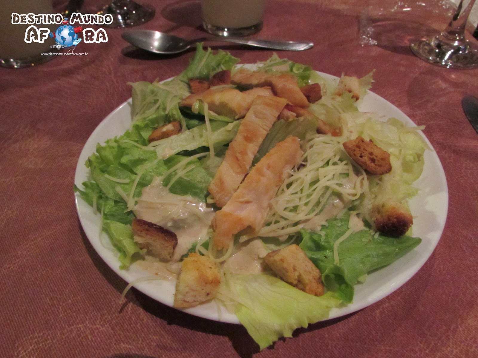 Como entrada, claro, uma salada caesar caprichada com um molhinho de café (Caesar Coffee Salad). Este tipo de salada é preparado com alface, croûton, frango grelhado e é muito apreciado nos Estados Unidos. Uma delícia, mas foi apenas uma amostra do que estava por vir…