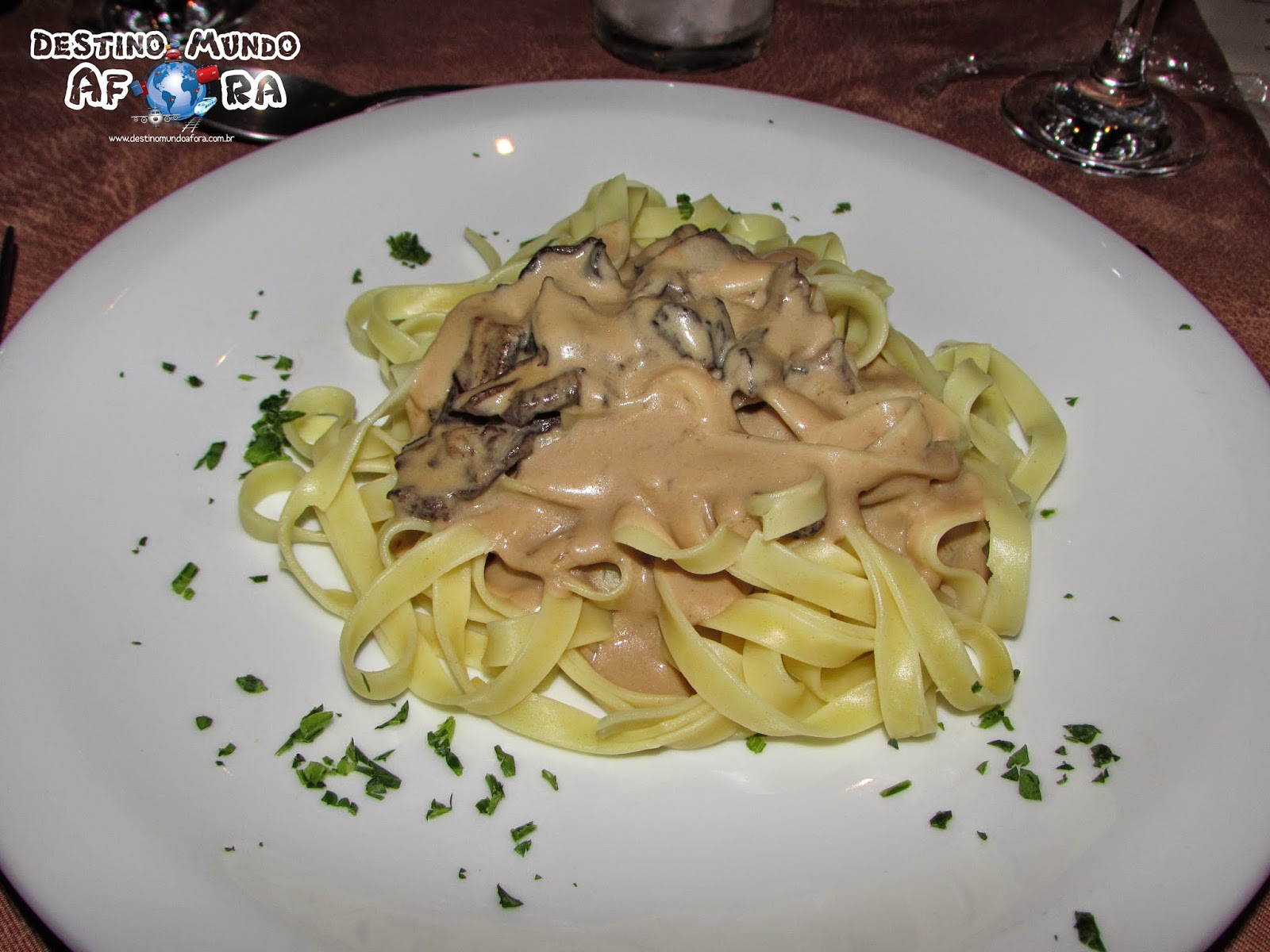 Em seguida, veio o primeiro prato: fettuccine ao capuccino de funghi. Estava gostoso, mas confesso que achei o molho de cappuccino meio forte. De qualquer maneira, vale a pena experimentar.