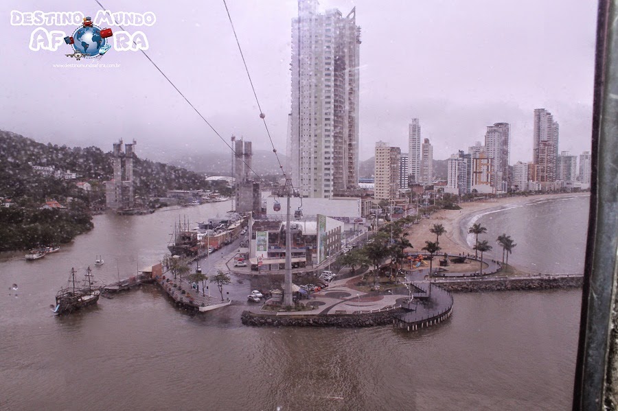 A estação tem arquitetura inspirada nas embarcações e possui três pavimentos, sendo a área de embarque no segundo piso. No espaço, há constantemente exposições artísticas, artesanato, entre outros, além de restaurantes, lojas e bares. De lá, a gente pegou o bondinho, que liga o lado sul da orla de Balneário Camboriú, subindo até o Morro da Aguada e descendo até a praia de Laranjeiras.