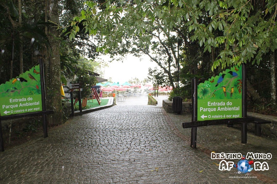 No Morro da Aguada, em meio à Mata Atlântica e a 240 metros de altitude, é possível descer para apreciar a vista nos mirantes, fazer trilhas ou aproveitar para um bate-papo nos quiosques e bares. Não conseguimos aproveitar muito, uma vez que estava chovendo demais. Inclusive, tínhamos os ingressos para fazer tirolesa – Zip Rider -, o que foi impossível. Triste para Tael e Elton, que estavam ansiosos para descer… E tem ainda o trenó, Youhooo, que percorre os trilhos em meio à mata.