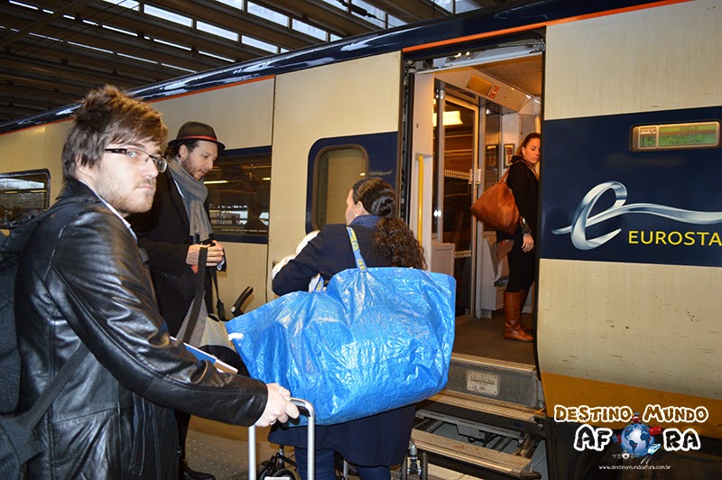 Ir de trem para Paris era uma das possibilidades de transporte entre as duas capitais que visitaríamos. Se comprada com antecedência pelo site RailEurope o bilhete sai tão em conta quanto uma passagem de avião. A viagem dura duas horas e passa pelo túnel dentro do canal da Mancha. O trem viaja a cerca de 300 km/h, mas você nem nota. É uma viagem bastante tranquila.