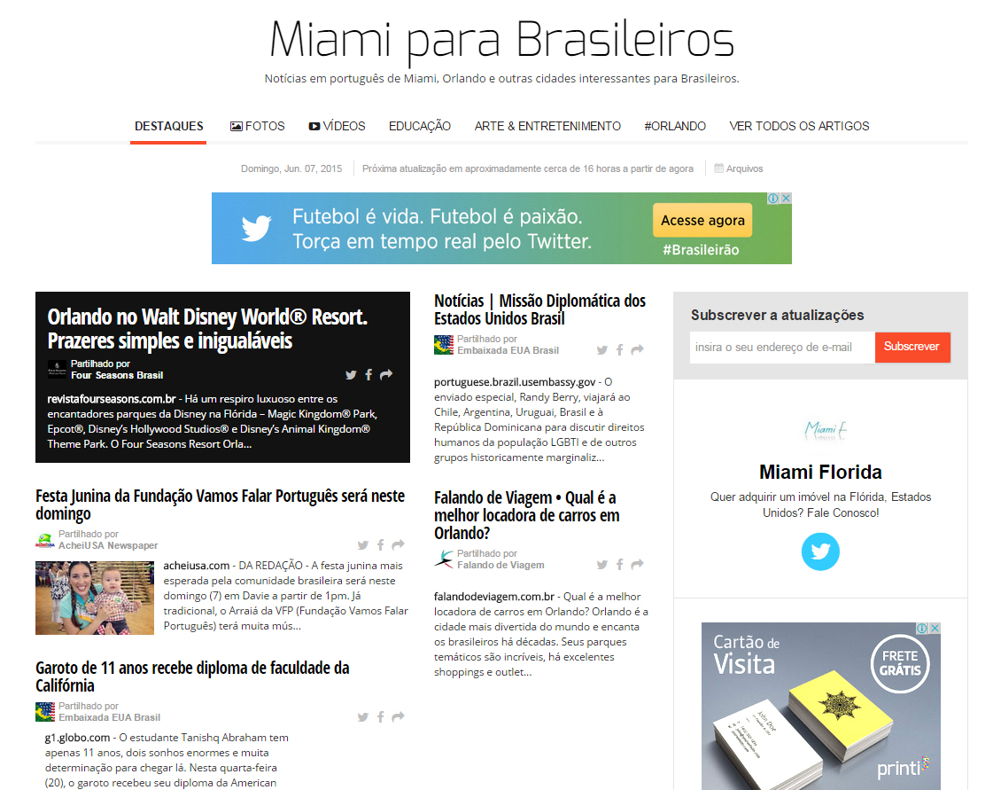 08/06/2015 Blog citado no portal Miami para Brasileiros Postado por: Tatiana Dornelles Tweetar O post do blog sobre o restaurante Galley Grill, a caminho de Key West, na Flórida, foi citado no portal Miami para Brasileiros. Data: 7/6/2015 Confira aqui.
