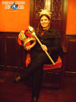 Ao chegar ao castelo tem um trono com cetro e coroas. Este trono é cercado por duas armaduras de cavaleiros. Todos param para fazer fotos ali. E eu também. Como a cora da rainha lembra uma tiara, tive um momento Amy Farah Fowler do The Big BangTheory: “I have a tiaraaa”. Em outros pontos há mais armaduras, tapeçarias e painéis.