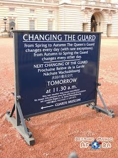 No verão, a cerimônia ocorre todos os dias às 11h30 e recomenda-se chegar com antecedência de meia hora para conseguir chegar perto da grade. A troca é interessante e todos os dias os guardas escolhem músicas diferentes. Para quem quer ter uma ideia de como é a troca da guarda, pode ser uma que ocorre diariamente, sem tantas firulas musicais, na House Guards, perto do palácio. Esta troca ocorre de segunda a sábado, às 11h. Se a rainha estiver no palácio, há um número maior de guardas na cerimônia.